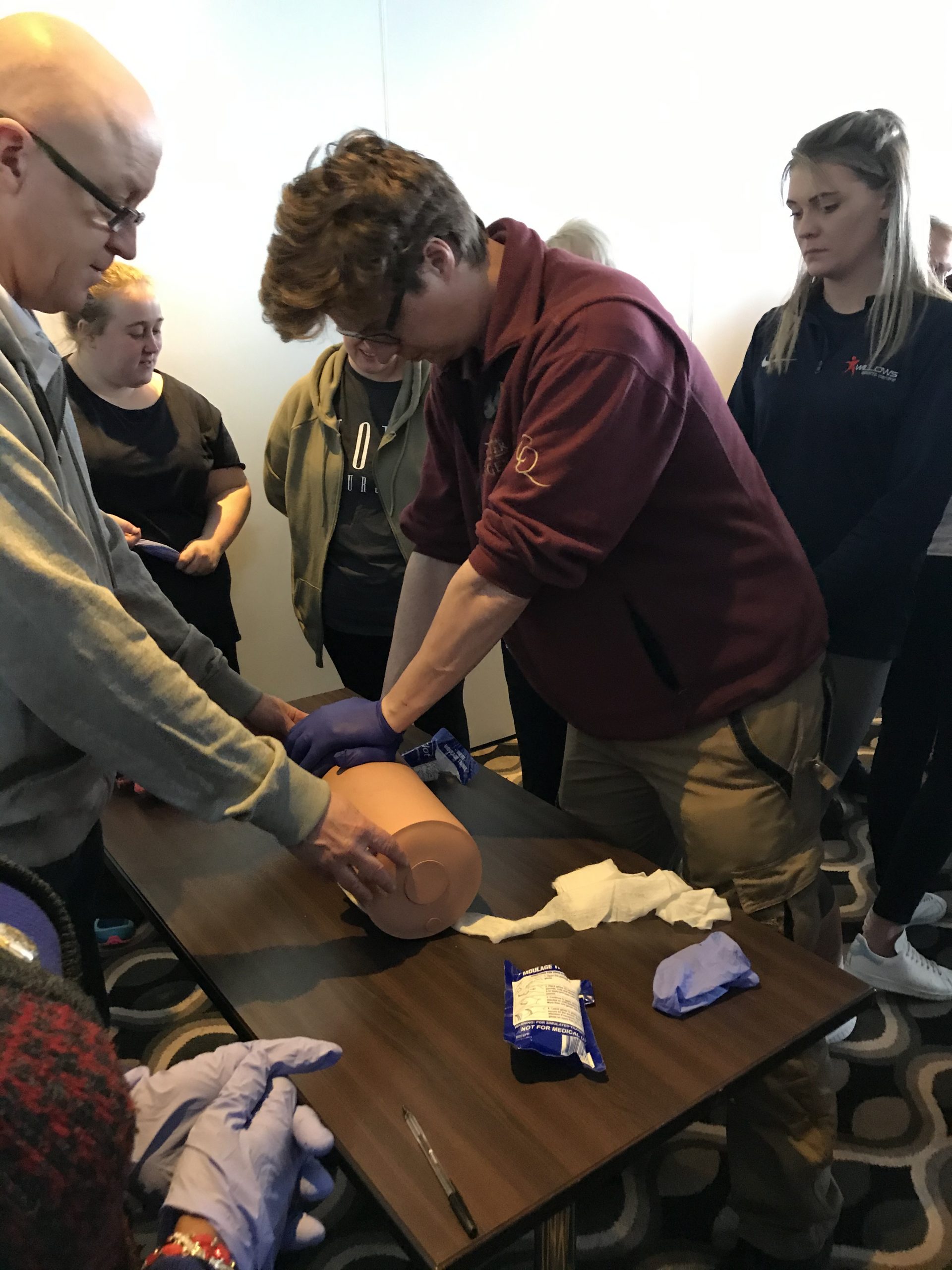 During the session they learned about the equipment and how to use it should an emergency occur, this included identifying wounds, how to pack them and stem the blood flow, and how to use a tourniquet if needed.