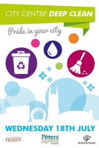 Cathedral Quarter and St Peters Quarter BID’s are working alongside Derby City Council as part of their City Centre Deep Clean due to take place on Wednesday 18 July.