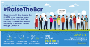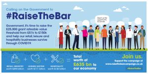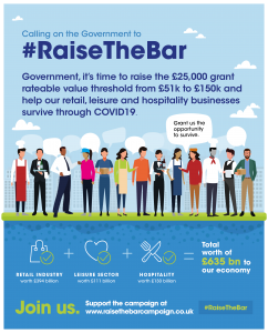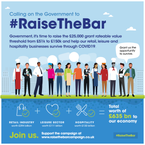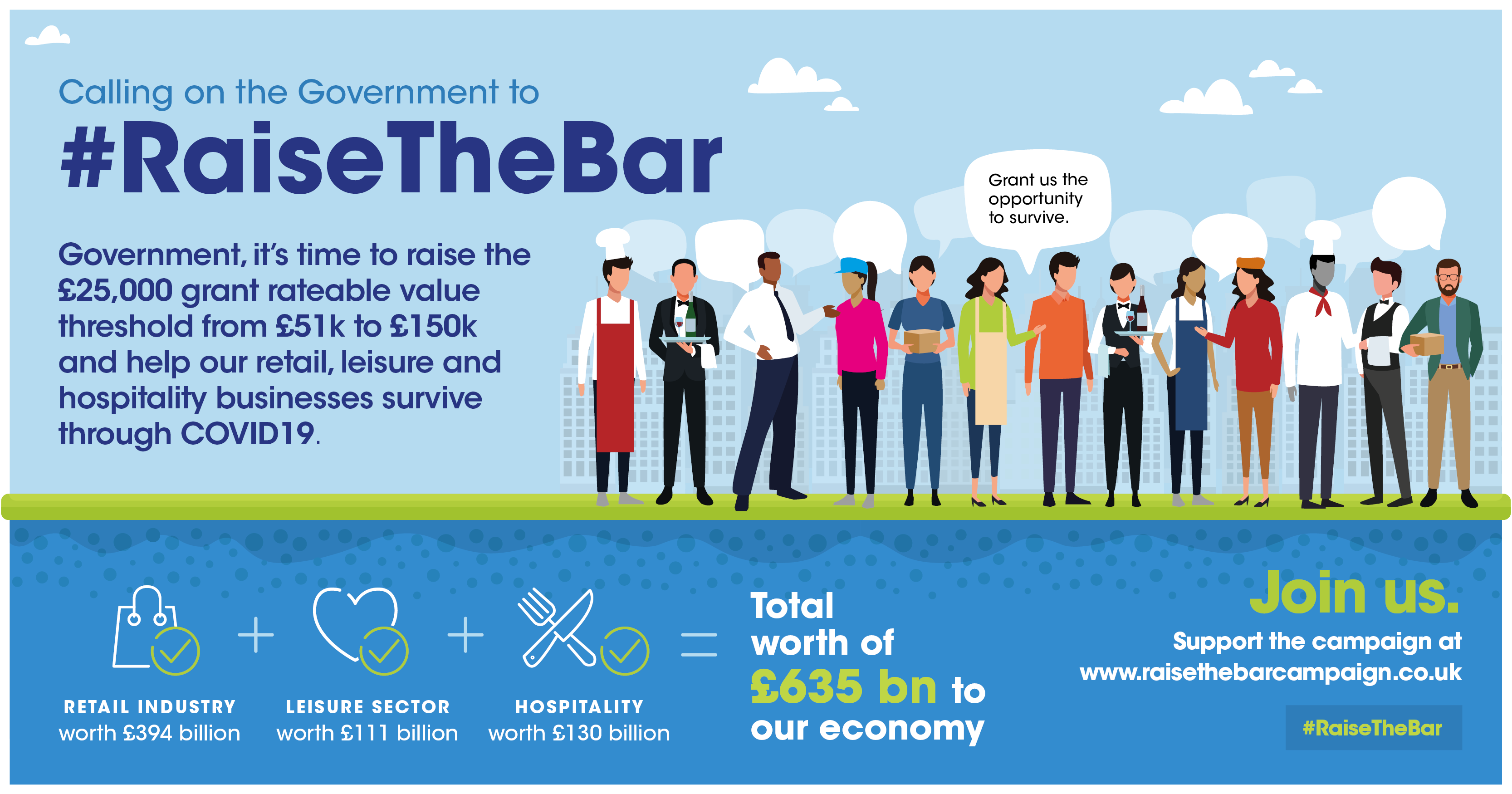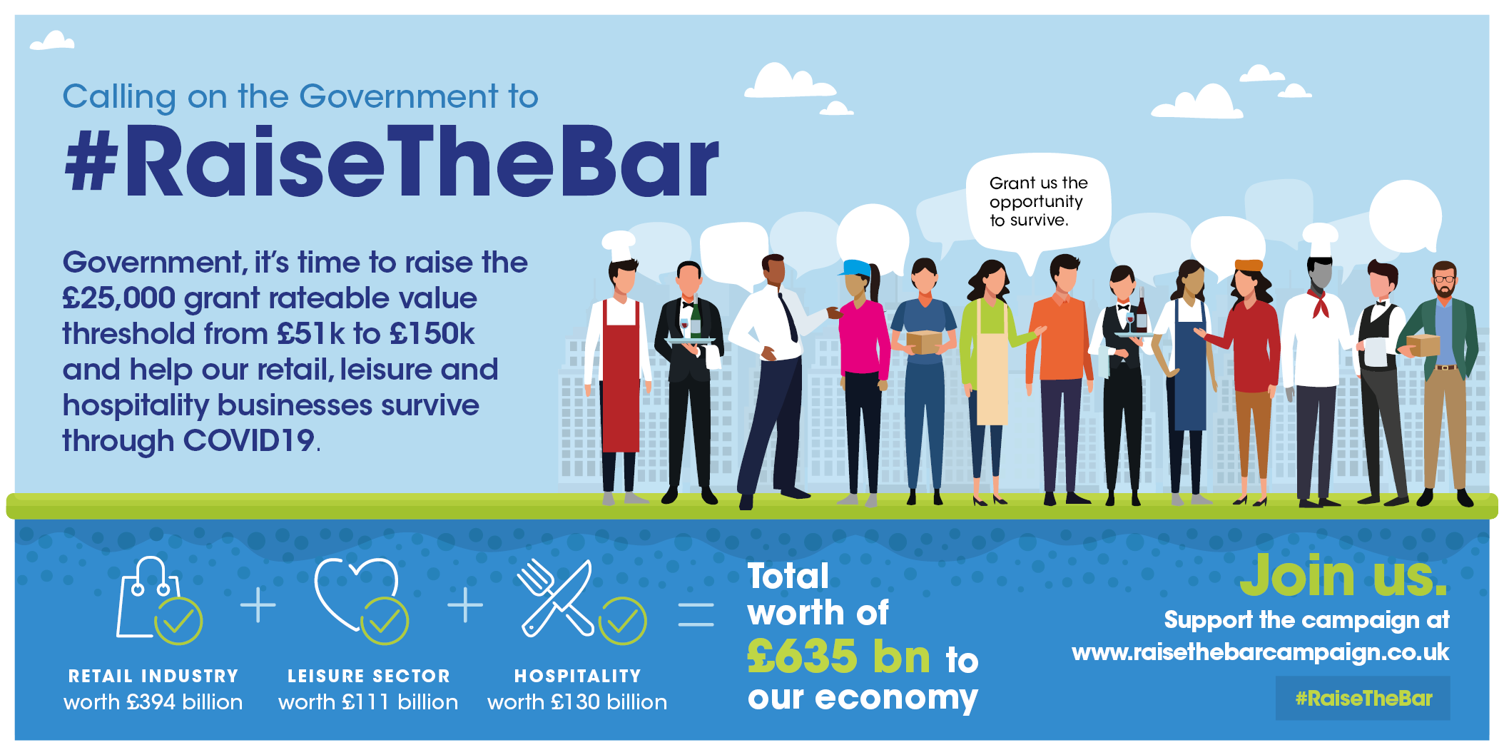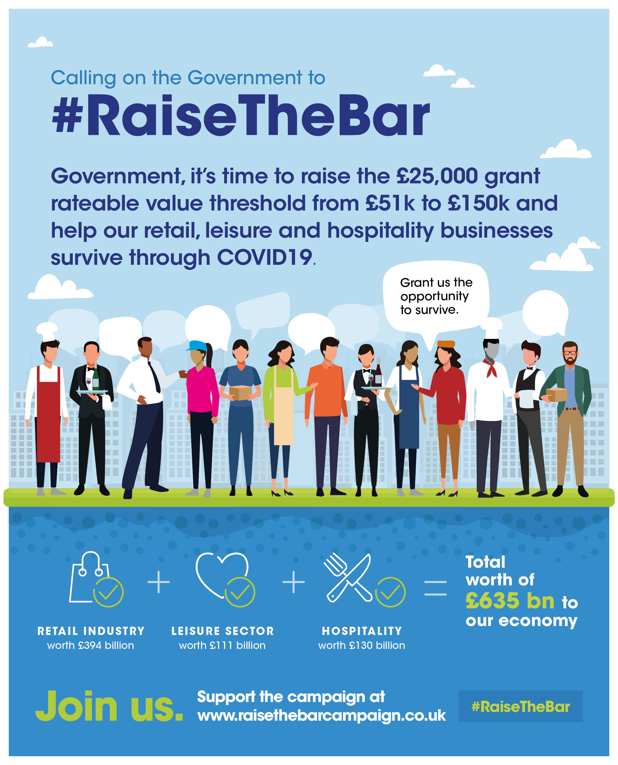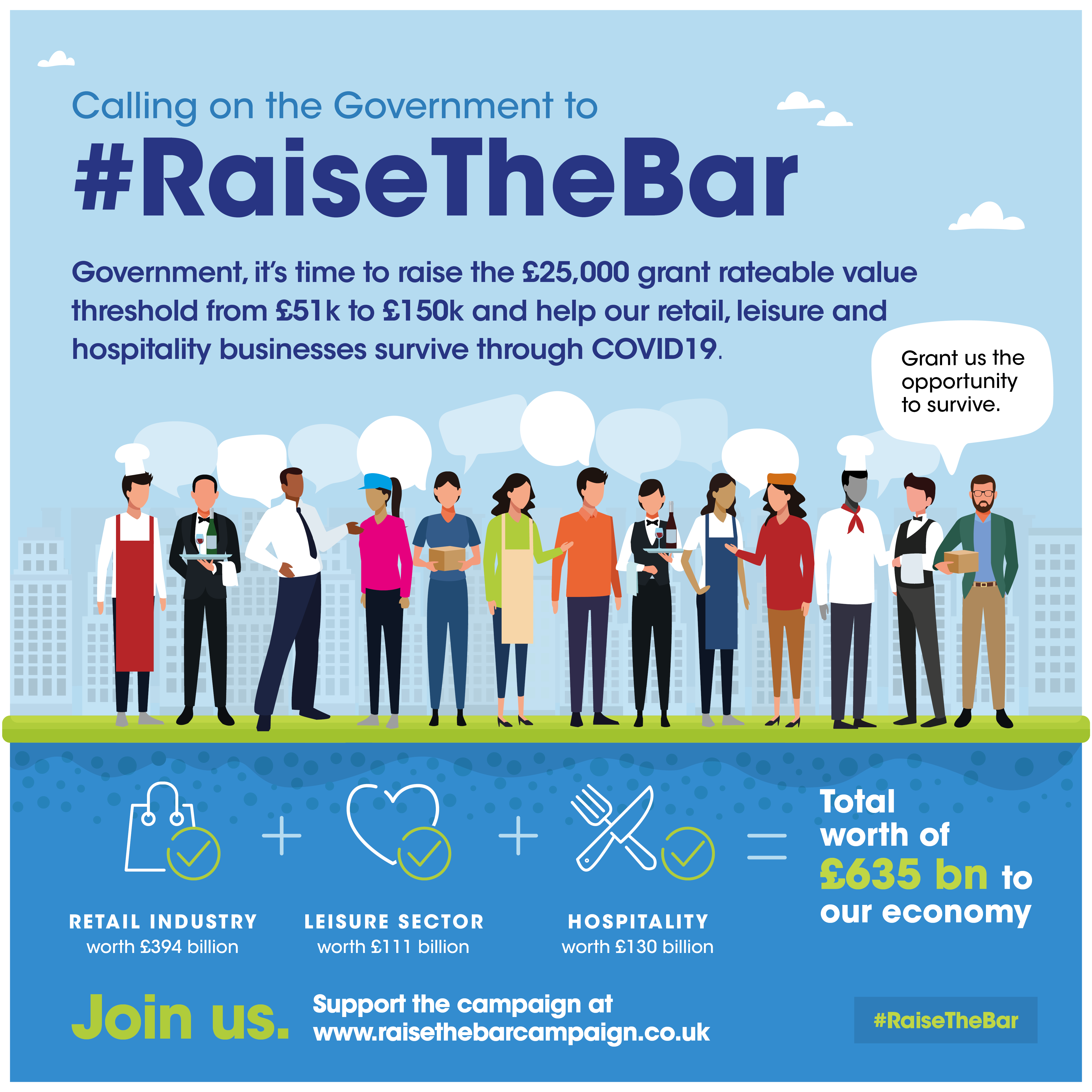 - Government, it’s time to raise the £25,00 grant rateable value threshold from £51,000 to £150,00 and help the retail, hospitality and leisure sectors survive COVID-19 www.raisethebarcampaign