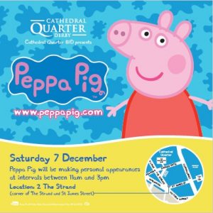 The Cathedral Quarter BID has arranged an extra special treat in the run-up to Christmas where Peppa Pig will be making personal appearances at intervals between 11am – 3pm.