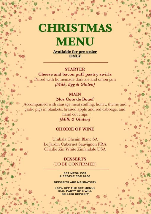 The Silk Mill – Full Street – Christmas Buffet Menu